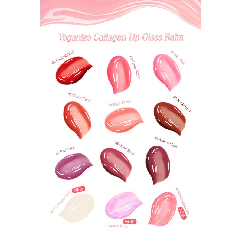 Introducing SELF BEAUTY's Veganize Collagen Lip Glass Balms - revolutionary lip care products for chapped lips that combine vivid color with nourishing ingredients for a seamless, fail-proof lip experience. Available in a convenient 0.06 oz size, this natural lip balm promises to deliver a moist and radiant finish with the texture of glass beads in 9 stunning colors.