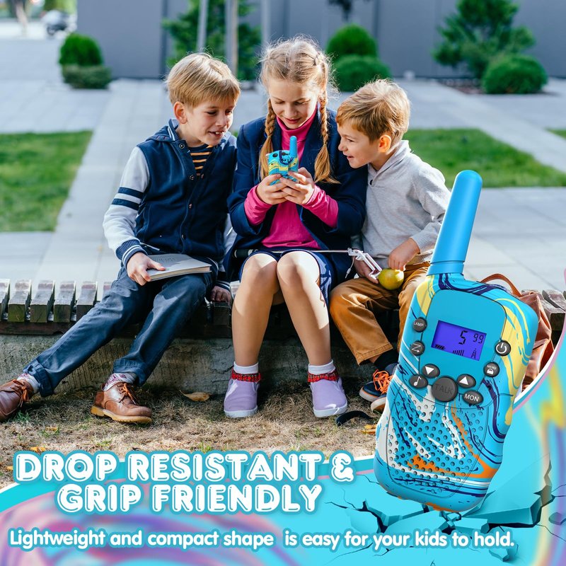 - 【Ergonomic Design】Featuring a small and lightweight body, our walkie talkies are easy for kids to hold in their hands. Each walkie talkie toy weighs only 90g, making them comfortable to carry around. An uncomplicated push-to-talk button makes this toy easy to use for boys age 3 4 5 6 7 8.