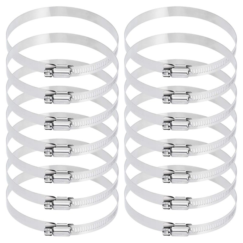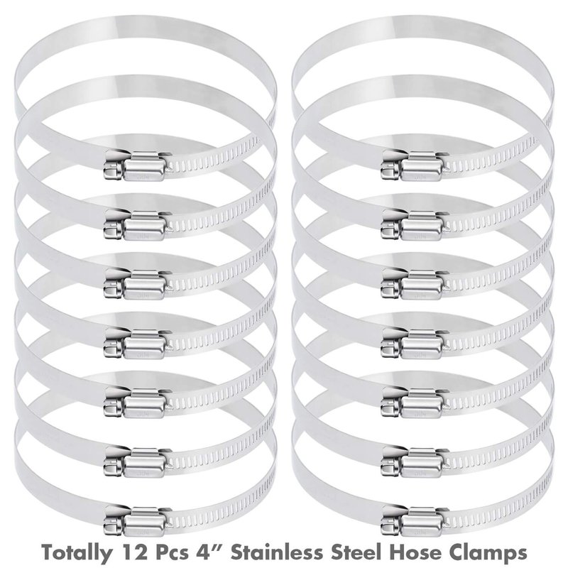 - PACKAGE INCLUDES: The stainless hose clamp kit comes with totally 12 pieces hose clamps with adjustable size range from 91 mm to 114 mm, perfect for hose outside diameter 91-114mm / 3.6-4.4 inch
