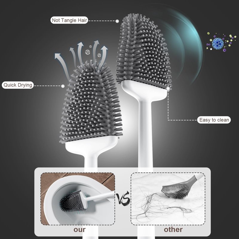 - No Hair Tangling Troubles: Larger bristles make it not easy to entangle hair and other dirty foreign objects. Getting rid of hair by simply rinsing the brush head. Save your time fixing cleaning problem and hair-tangling troubles. Instead of using plastic bristles, Sellemer Toilet Brush uses silicone bristles, which can protect toilet bowl from being scratched also.