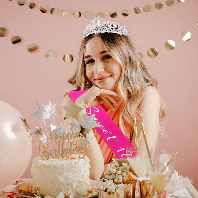 - Great 16th birthday gifts for girls: In addition to balloons, curtains, banners and other 16th traditional birthday decorations, add a birthday crown to women and leave her a special birthday moment. No one can refuse to be beautiful, especially at the commemorative moment of birthday. Put it on and take photos with any method you like, leaving a precious memory for the future
