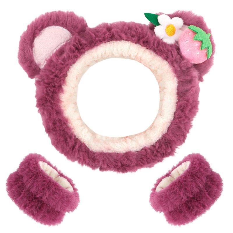 - Package included: 1 pack pink bear ears headband and 1 pair of wrist bands for washing face or makeup