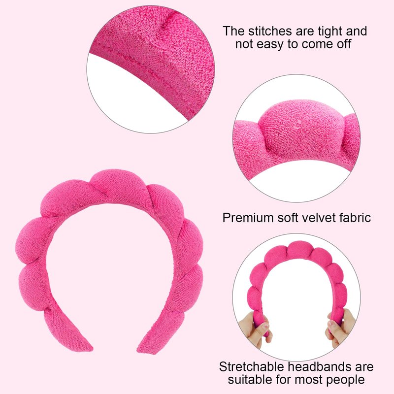 - Material: The sponge headband bow spa headband is made of sponge and soft velvet/ towelling fabric. The wrist bands is made of coral velvet, which absorbs water well