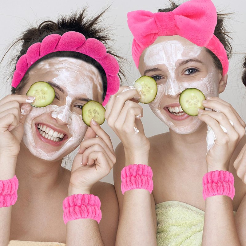 - Usage scenario: Wear the headband and wristband when you wash your face to prevent water from wetting your hair and your sleeves. The two styles of spa headbands can be used interchangeably or shared with family or friends