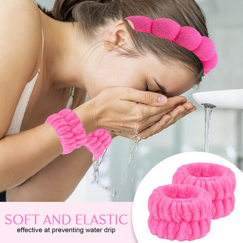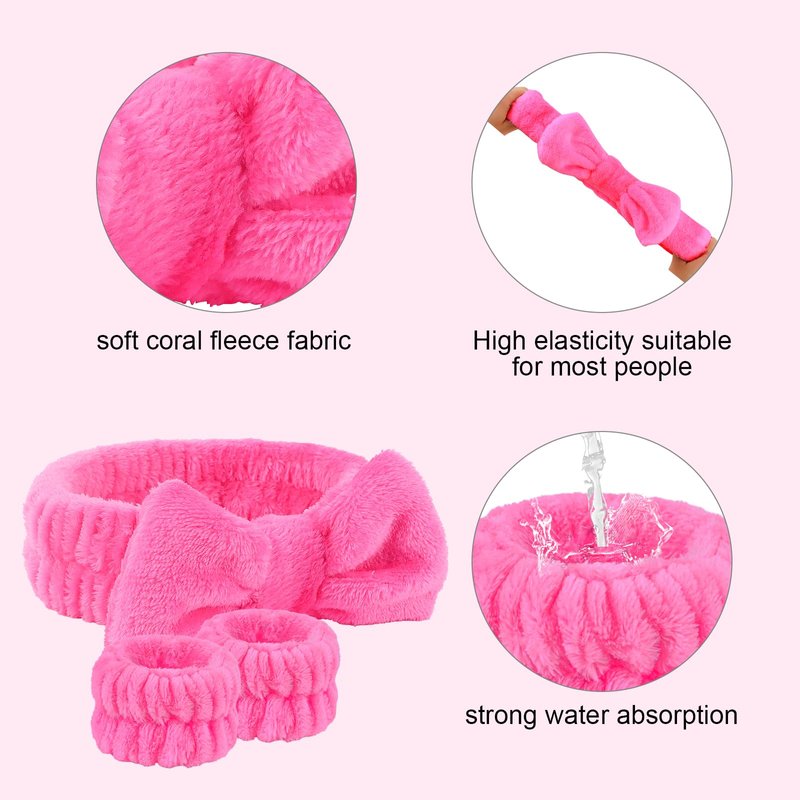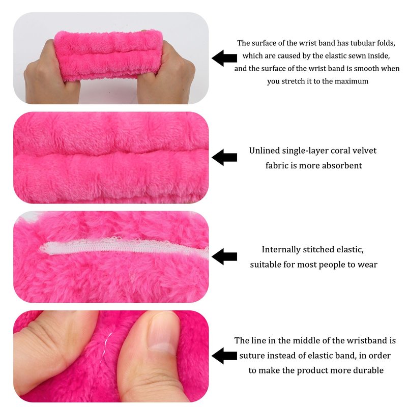 - Package included: 1 pack sponge headband, 1 pack bow spa headband and 2 pair of coral velvet wristbands. The surface of the wrist band has tubular folds, which are caused by the elastic sewn inside, and the surface of the wrist band is smooth when you stretch it to the maximum