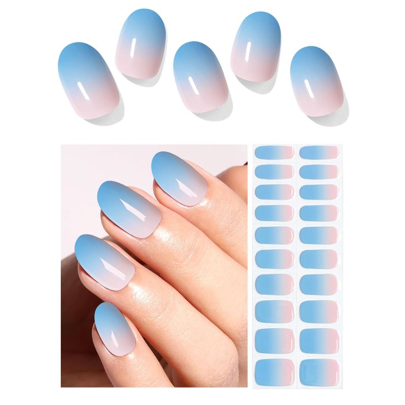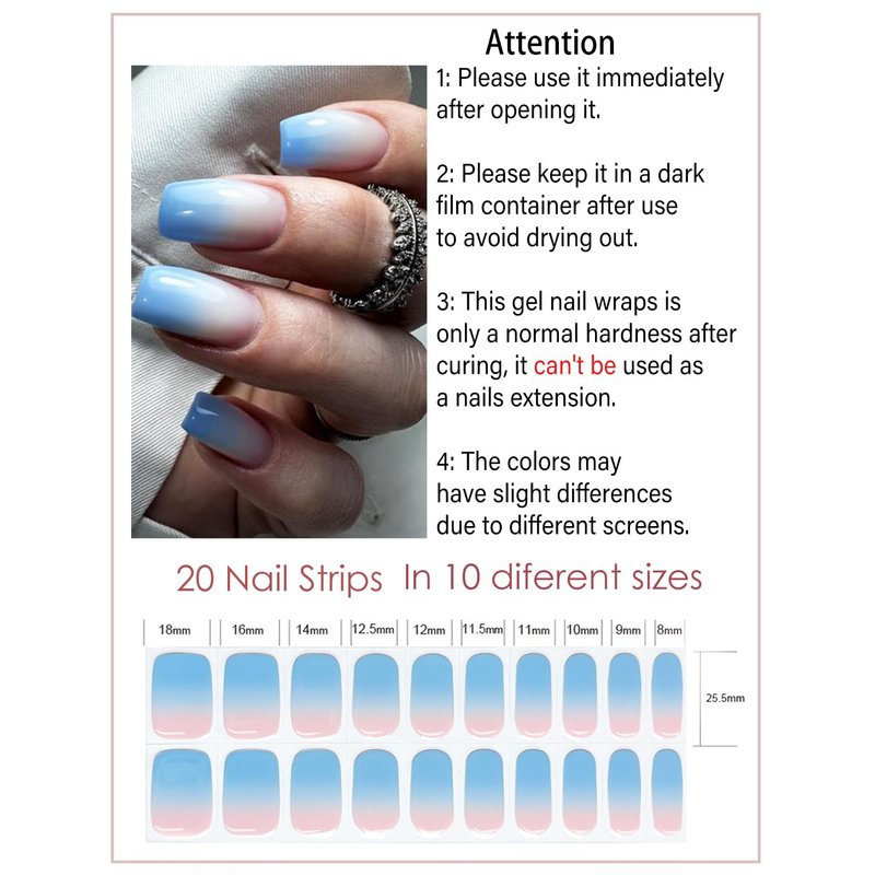 - Gel nail polish sticker: New style semi cured gel nail wraps are made from real gel nail polish ingredients, not plastic material. Help you get rid of long-time manicures and nails damage.