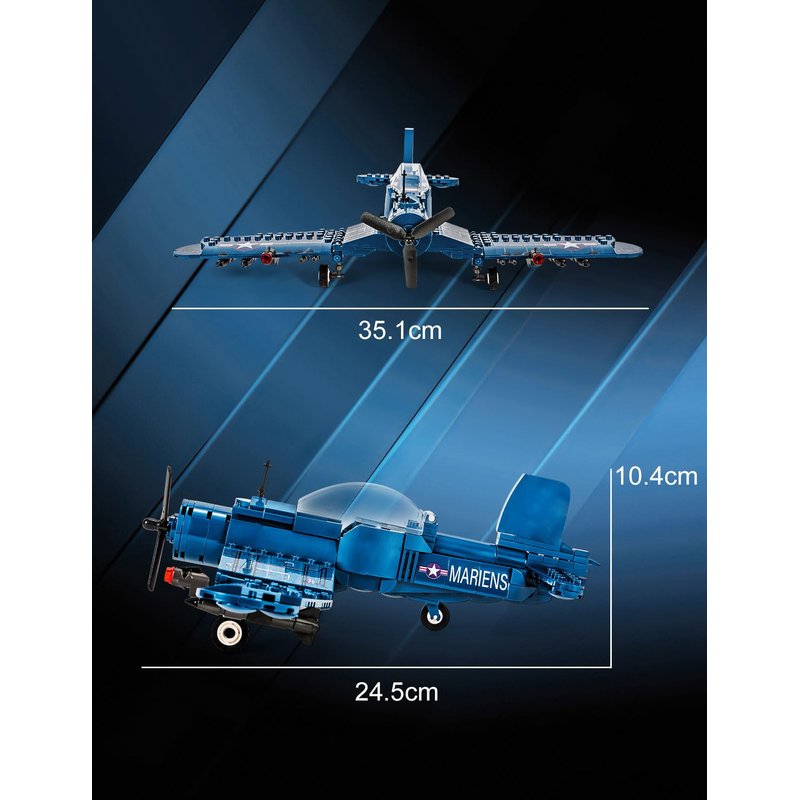 SEMKY Military Fighter Jet F4U WW2 Fighter Aircraft Jet Corsair Air Force Building Block Set (440 Pieces) -Building and Military Toys Gifts for Kid and Adult