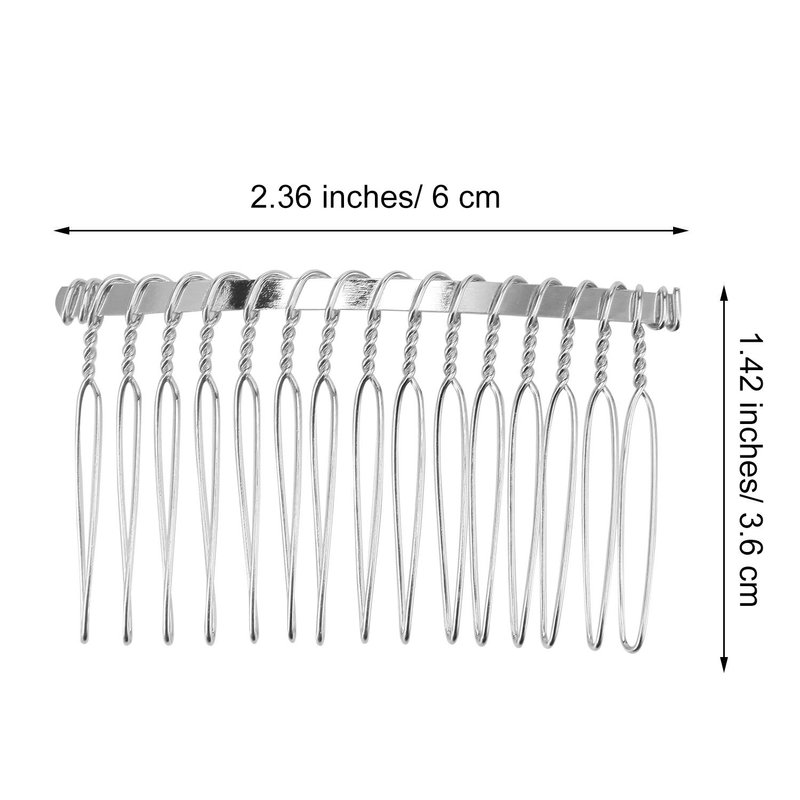 Senkary 10 Pieces Metal Wedding Veil Comb Silver Wire Hair Comb for Women Hair, 15 Teeth