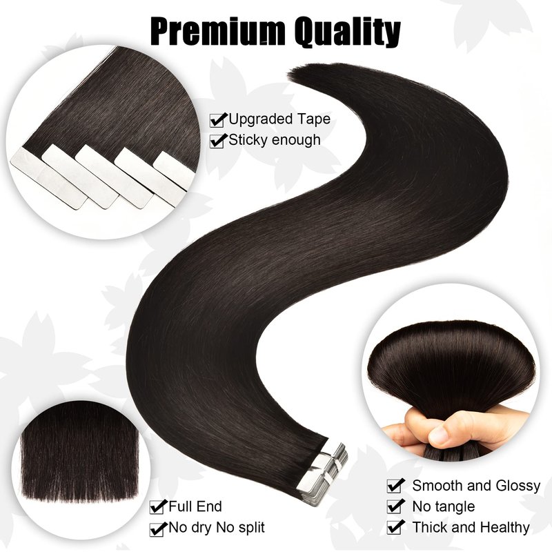 Senmy Tape in Extensions Human Hair 16inch Natural Black Tape in Hair Extensions Real Human Hair 40g/Pack Silky Straight Tape in Human Hair For Black Women (#1B Natural Black, 16 Inch)