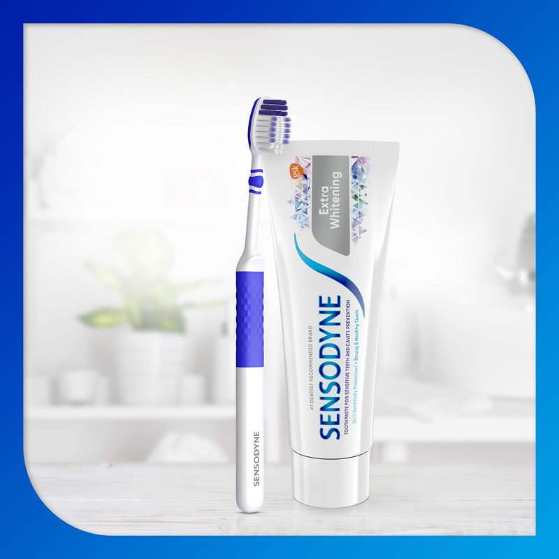 - Use this adult soft toothbrush with Sensodyne toothpaste twice daily