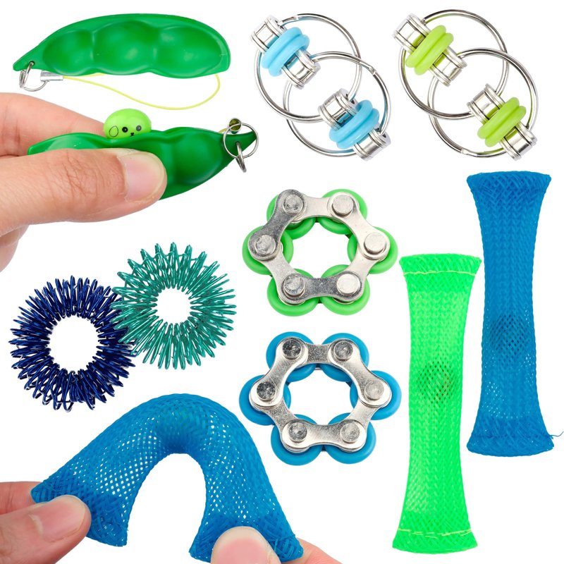 - 🎁10 Set Fidget Packs: 2 Roller Chains, 2 Marble Mesh Fidget Toys, 2 Spiky Sensory Fidget Rings, 2 Six Roller Bike Chain Fidget, 2 Pea Pod. 5 kinds of various fidget toys help you relieve stress.