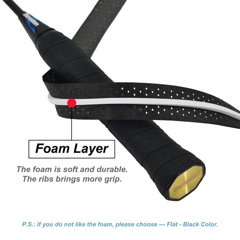 NOTE: A sponge line on the back of each overgrip make a little uneven surface offering a comfortable grip feeling and preventing your hand slipping from the handle easily.