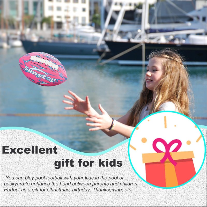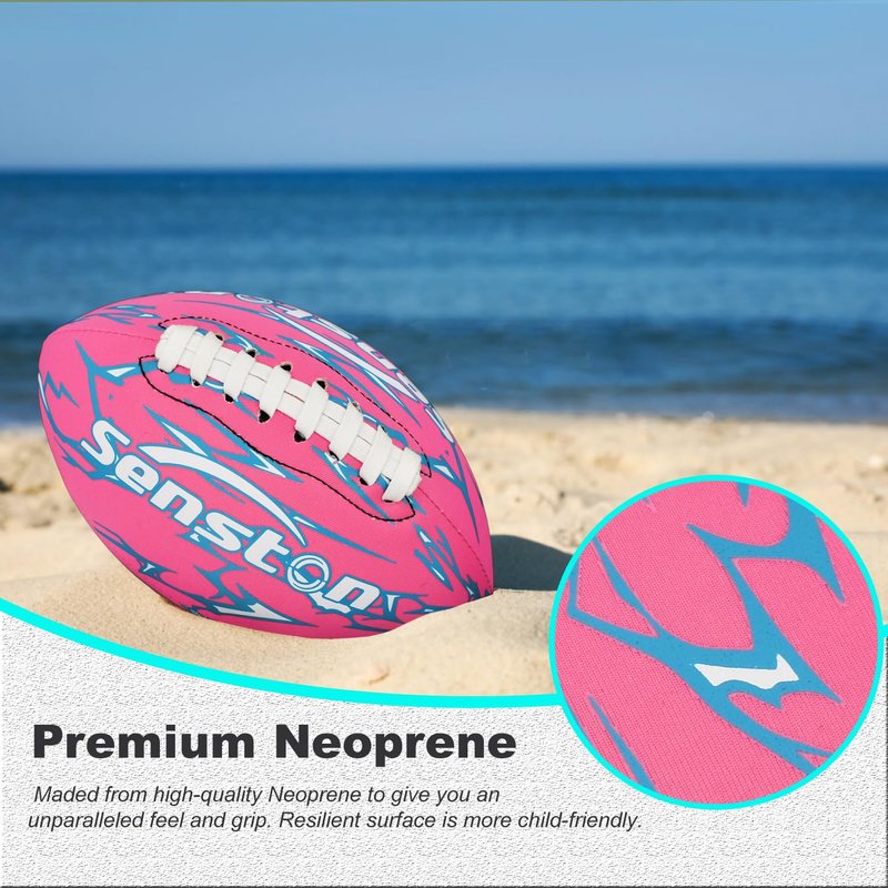 ★Complete Set★ You will receive 1x Football (9.25''), 1x pump, and 1x needle, everything you need to start playing right away. ★Premium Neoprene★ Maded from high-quality Neoprene to give you an unparalleled feel and grip. Resilient surface is more child-friendly. ★Waterproof★You can take your game anytime, anywhere. Perfect for pool, beach, backyard. ★Solid craftsmanship★ Double lacing straps provide excellent throwing feel; Heavy-duty stitching provides excellent longevity and durability. 100% butyl inner gallbladder to improve air tightness. ★Excellent gift for kids★ You can play pool football with your kids in the pool or backyard to enhance the bond between parents and children. Perfect as a gift for Christmas, birthday, Thanksgiving, etc