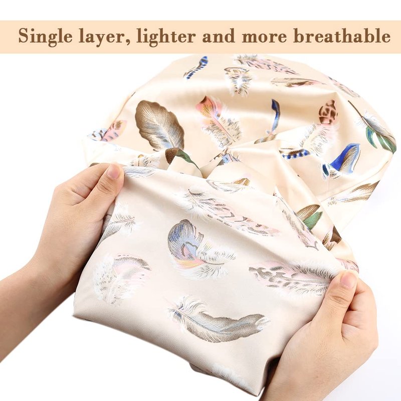Sent Hair Extra Long Bonnet Sleeping Cap with Elastic Band, Single Layer Silky Satin Bonnet Night Sleep Cap for Women Braids/Dreadlocks/locs/Curly/Long Hair (Beige Feathers)