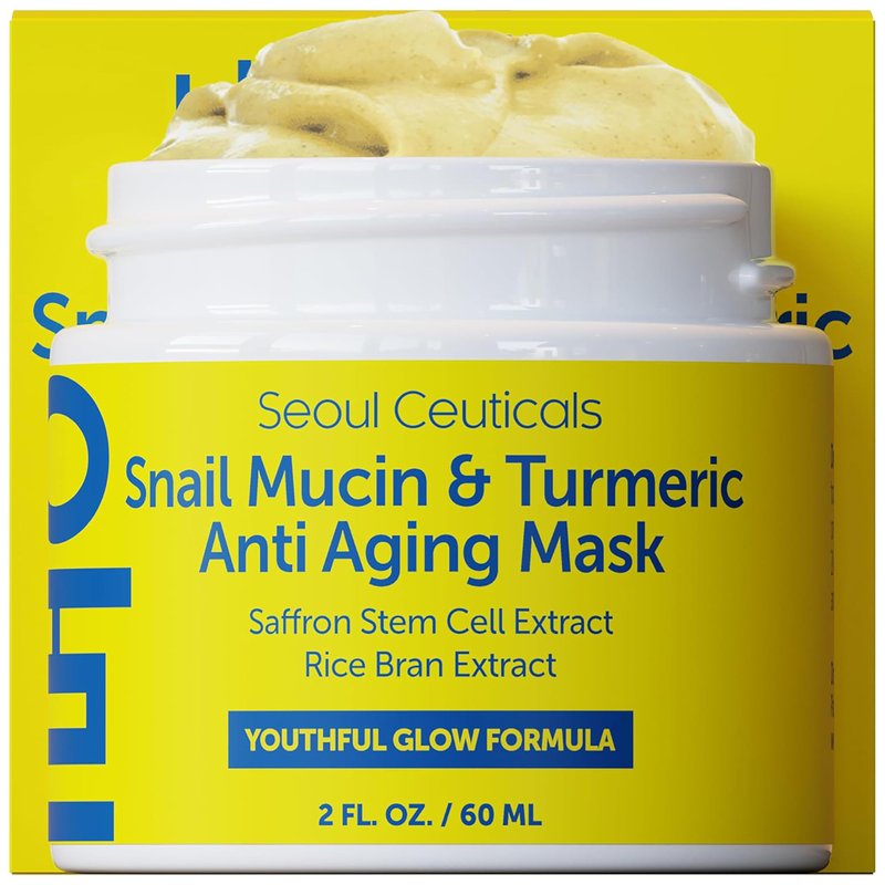 SeoulCeuticals Korean Face Mask Skin Care - Snail Mucin Turmeric Mask for Face – Cruelty Free K Beauty Anti Aging Face Mask for Healthy, Youthful Glow 2oz