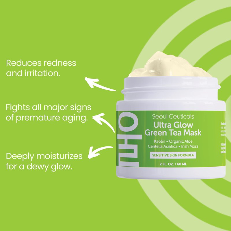SeoulCeuticals Korean Skin Care Face Mask for Sensitive Skin - Korean Skincare Green Tea Wash Off Masks - K Beauty Face Masks - Aloe Vera Mask + Centella Asiatica Hydrating Facial Spa Mask 2oz
