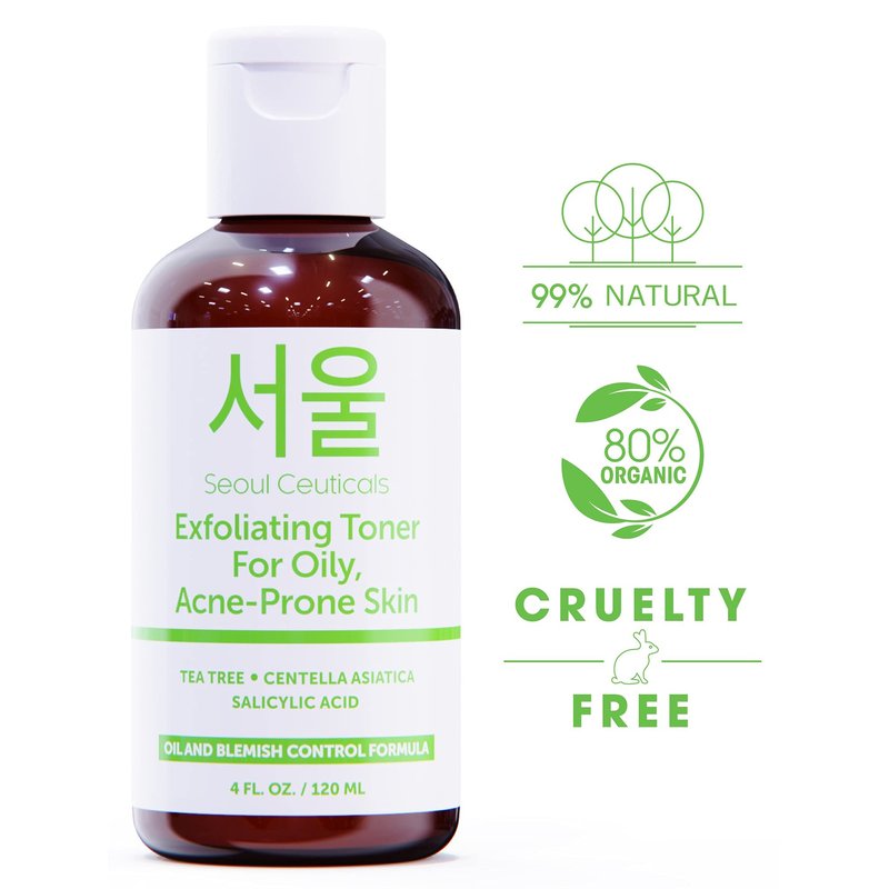 SeoulCeuticals Korean Toner for Oily Acne Prone Skin – Korean Skin Care Tea Tree Toner for Face – Facial Toner Centella Asiatica, Salicylic Acid. 4 FL OZ