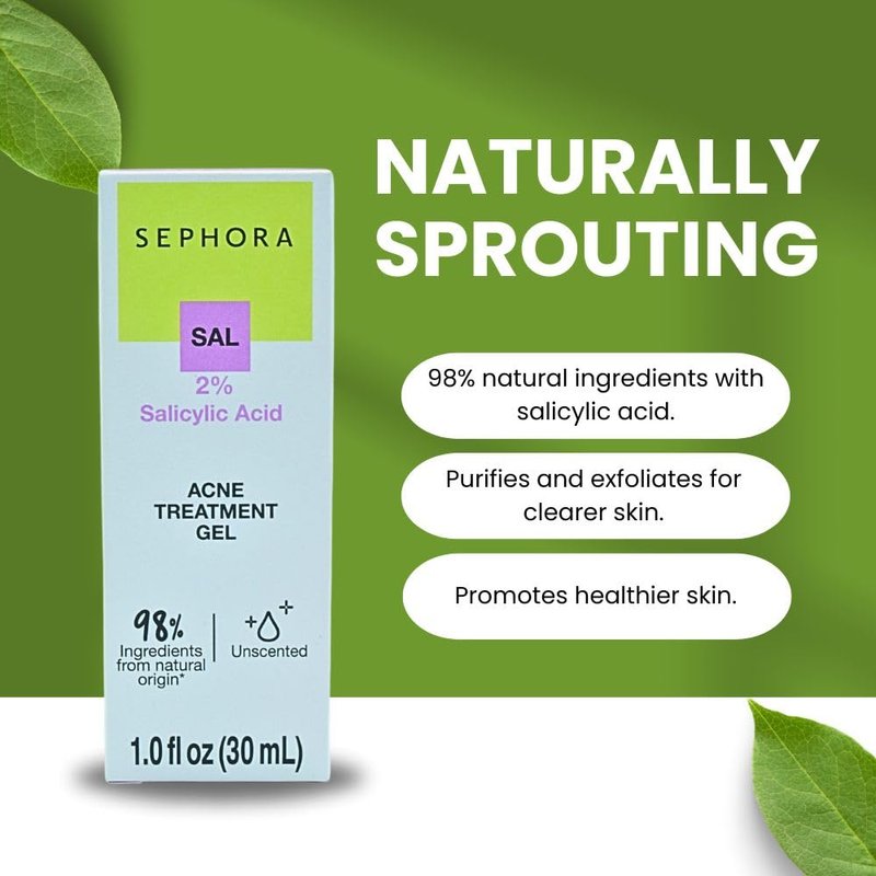 Unleash the transformative power of nature with SEPHORA COLLECTION Acne Treatment Gel, your ultimate solution for flawless skin. Crafted with 98% natural-origin vegan ingredients and infused with 2% salicylic acid from gaultheria leaves, this gel is a game-changer for acne-prone skin.