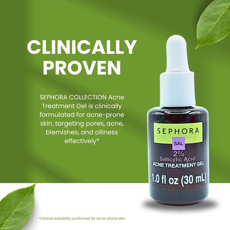 - CLINICALLY PROVEN: SEPHORA COLLECTION Acne Treatment Gel is clinically suitable for acne-prone skin, targeting skincare concerns such as pores, acne, blemishes, and oiliness with its effective formulation.