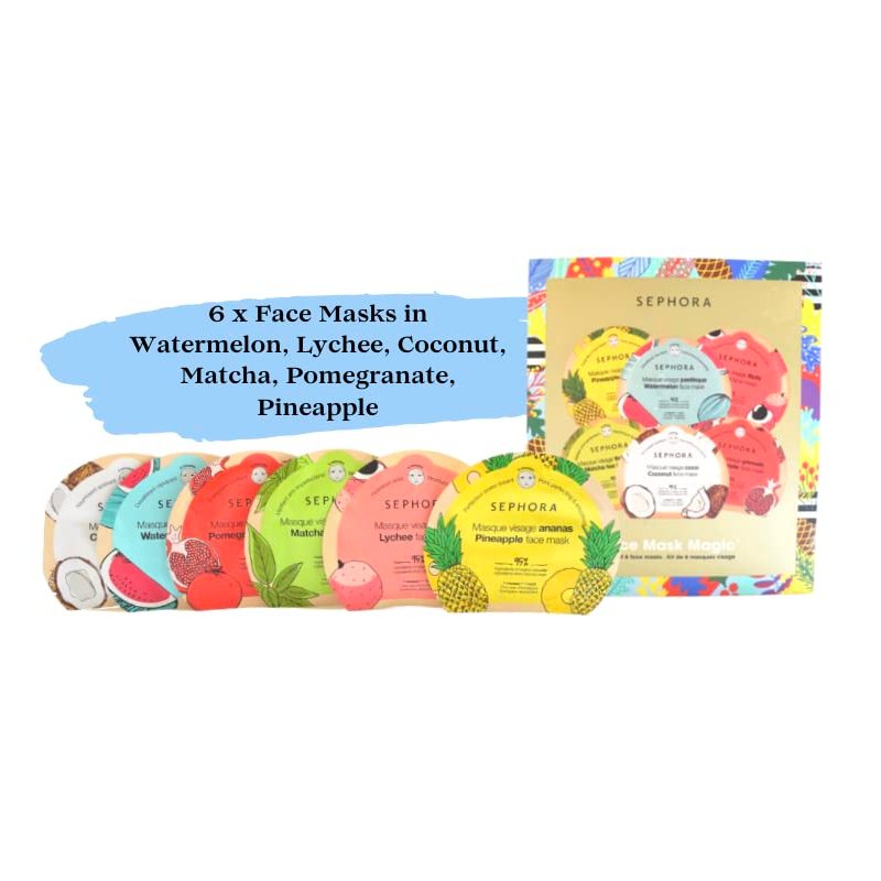 SEPHORA Collection Wishing You Face Mask Magic:: Watermelon, Lychee, Coconut, Matcha, Pomegranate, and Pineapple