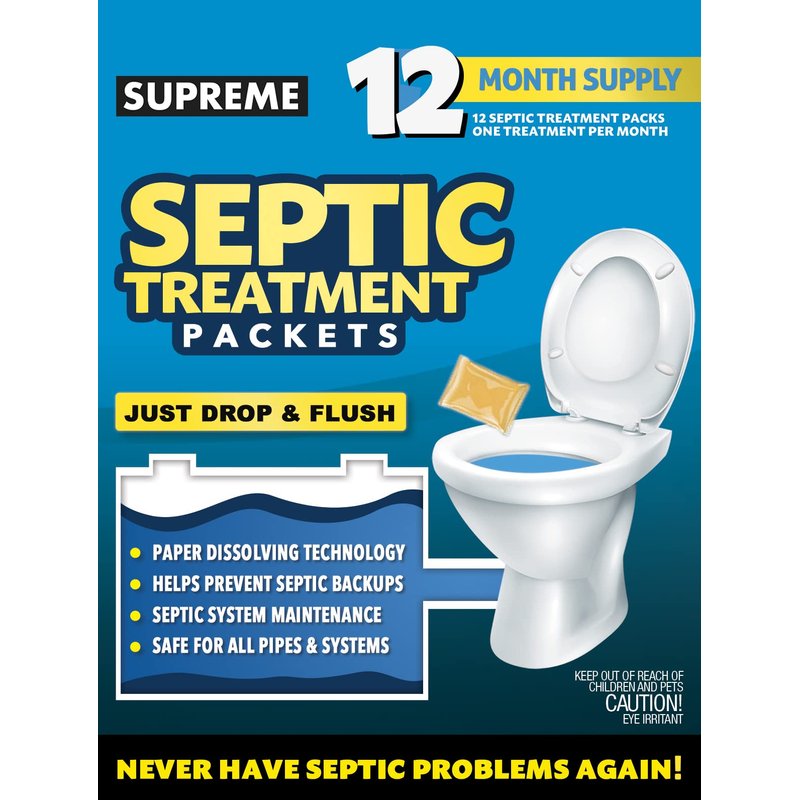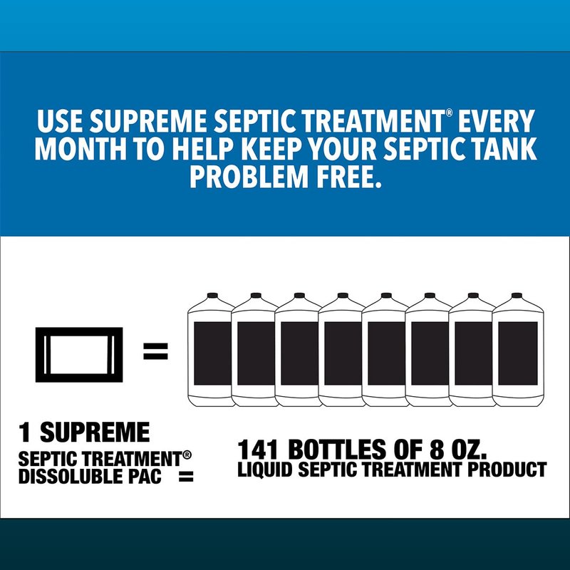 - SUPREME septic tank treatment packets contain 56 billion beneficial bacteria that digest grease, fats, oils, paper, and organic matter to keep your septic tank and sewer line clear.