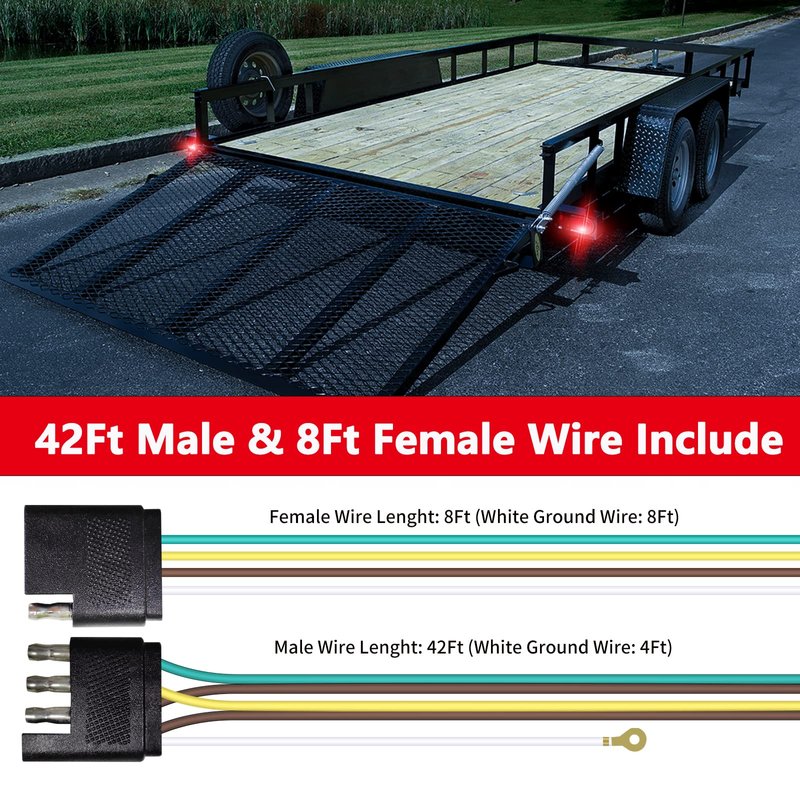 - 42ft Male Wire & 8ft Female Wire included: These trailer wiring kit can provide enough cable length for trailer lights wire replacement.