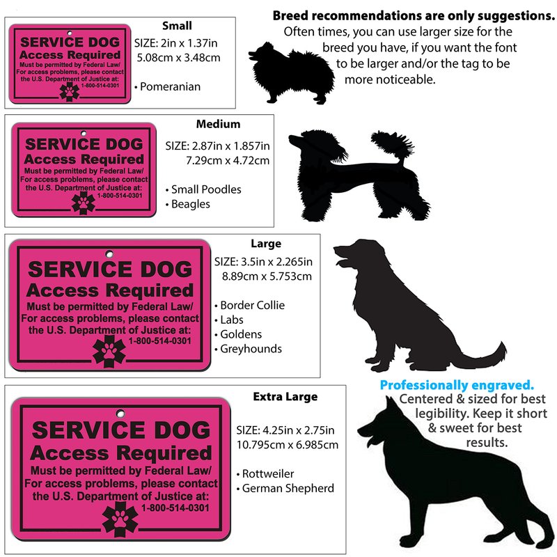 - SERVICE DOG ID SIZE: 4 different sizes available for all breeds of dogs (see sizing photo for more details)