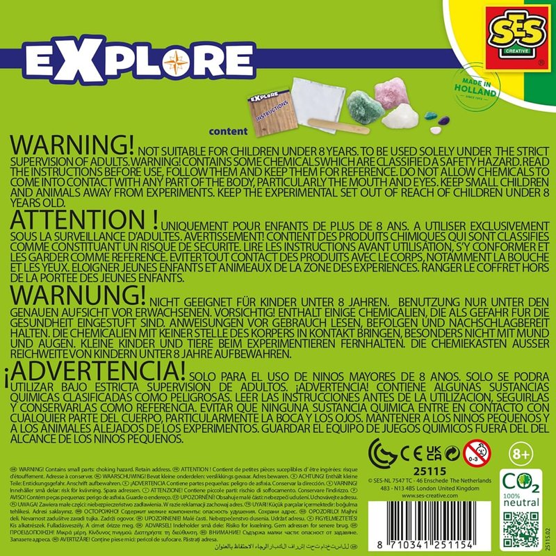 SES Creative: Explore Growing Crystals & Gemstones - DIY Science Kit, Create 3 Giant Alum Crystals from Stones, STEM Activity Craft Set, Kids Ages 8+