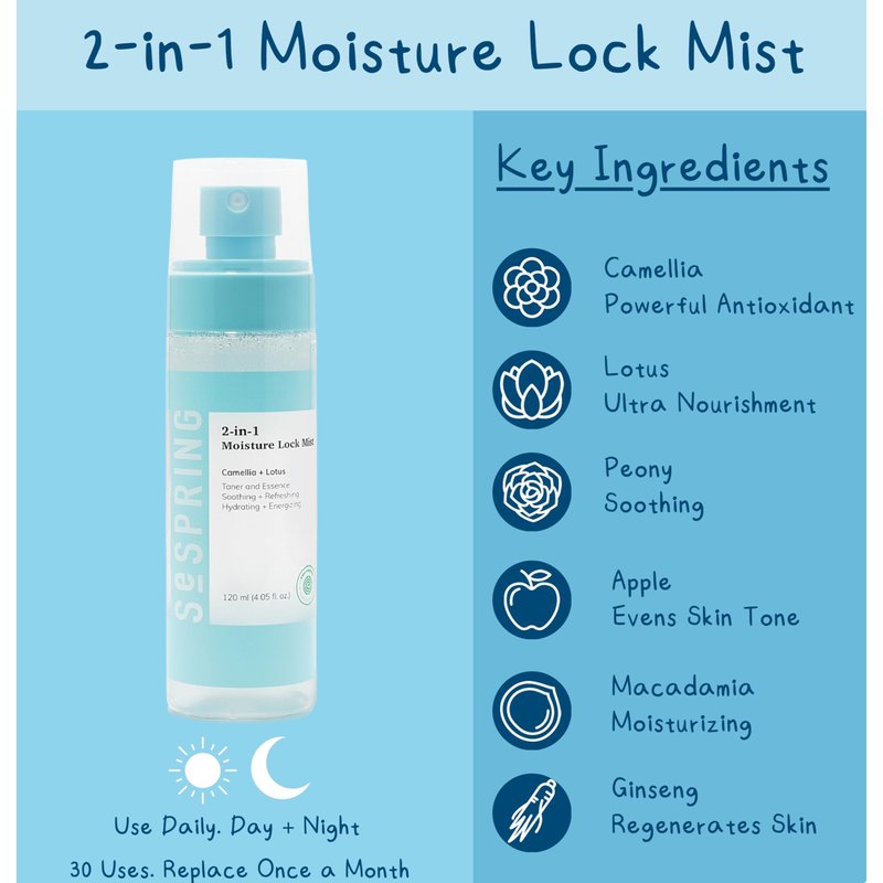 SESPRING 2-in-1 Moisture Lock Mist, Facial Toner & Essence, Korean Skin Care, Formulated with Camellia and Lotus, Korean Toner, Clean Beauty, Vegan, Cruelty Free, and Paraben Free (4.05 Fl Oz)