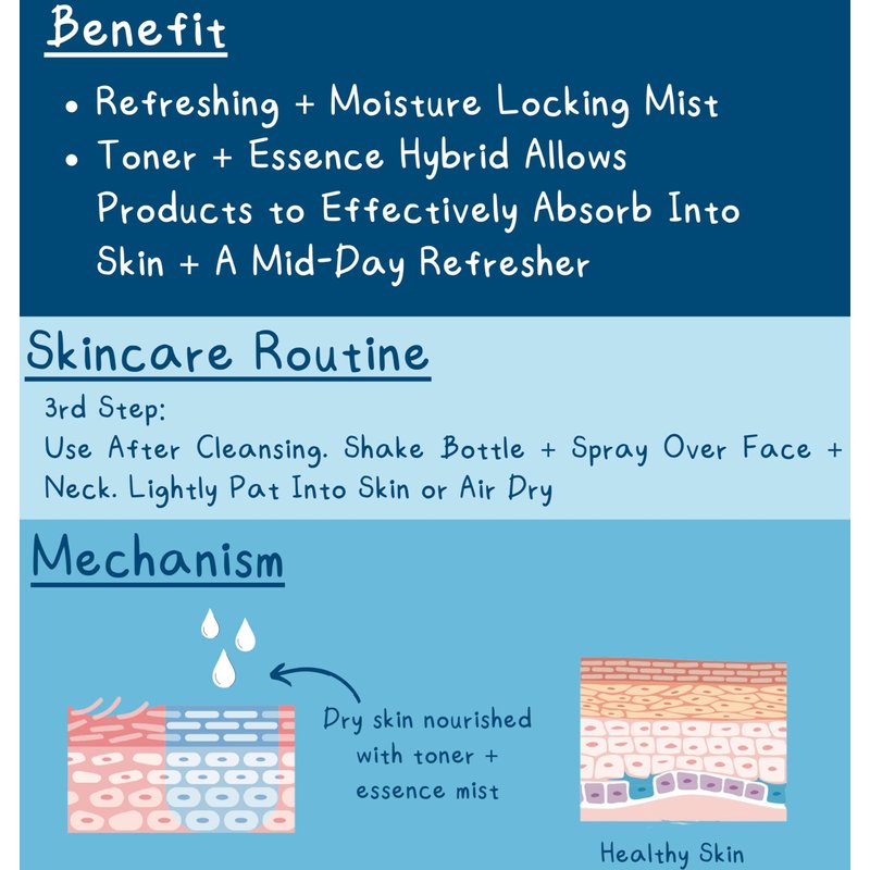 - KOREAN TONER: Our 2-in-1 Moisture Lock Mist and Toner locks in moisture and soothes your skin to hydrate it throughout the day for a more refreshed look that keeps you looking your best all day long