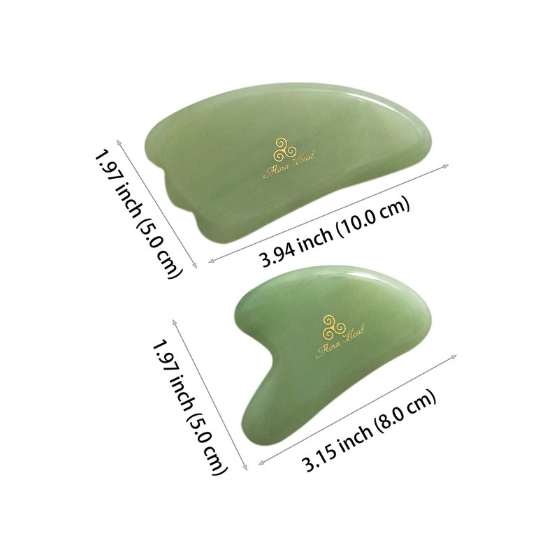 Set of 2 Gua Sha Facial Massagers of Jade Stone, Excellent massage and Skincare Tool