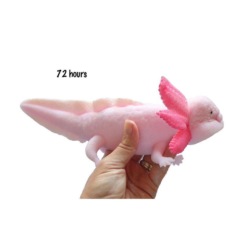 - These axolotls are one of those grow pets that slowly expand and grow after being submerged with water. Place it in water and it will slowly grows way bigger!
