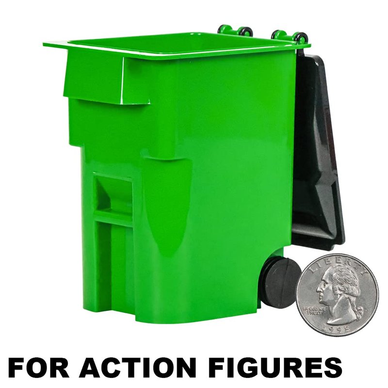 Set of 3 Mini Green Trash Cans with Lid & Wheels for Wrestling Action Figures