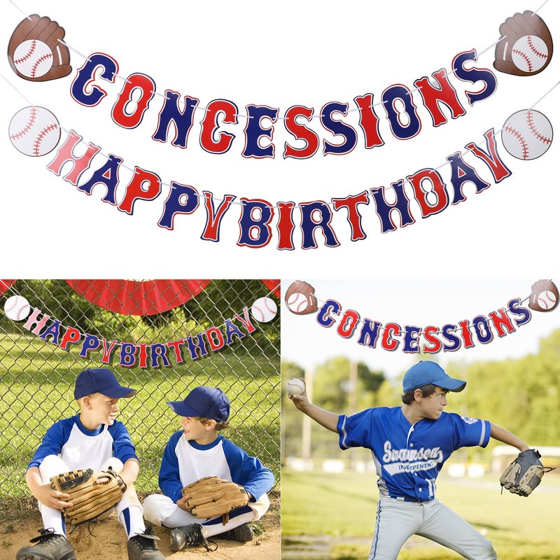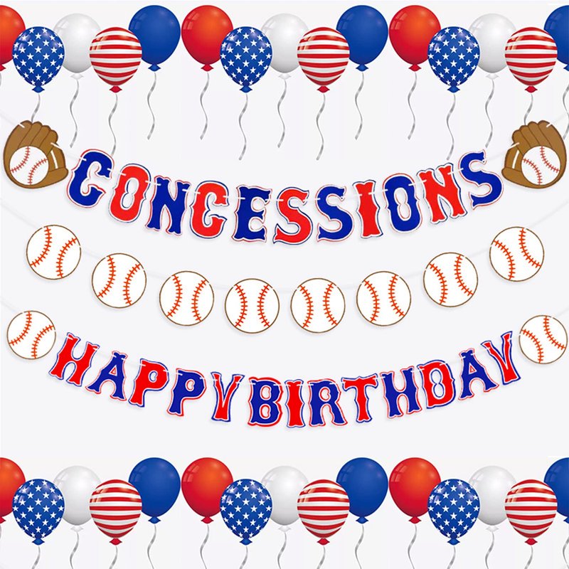 - Baseball Themed Design: Designed in a vibrant baseball theme, the cardstock is printed with baseball gloves and ball patterns and the words “CONCESSIONS” and “HAPPY BIRTHDAY” for those who love baseball. Baseball-themed banners are mainly red, white and blue, which are beautiful.