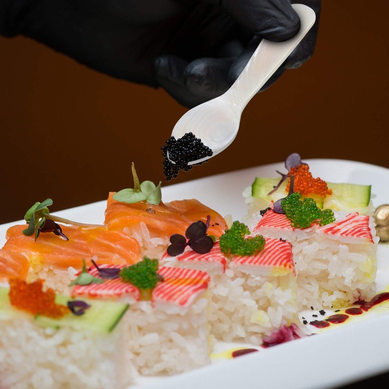 - Advantages of caviar spoon: the mother pearl spoons are applied for caviar, characterized with no synthetic or artificial filler, comparing with other metal spoons, the caviar spoon will not break the taste of caviar itself, which is a good choice to enjoy caviar