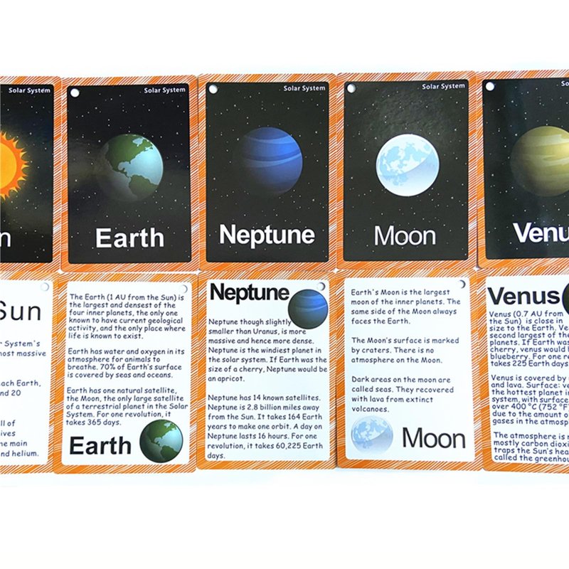 - 【PLAY GAMES】 We described all planets in the solar system with brief descriptions, colorful and interesting pictures on study cards, so they can be used in a funny and exciting class/game and teach kids fun facts about our planets, galaxies, sun, the moon. It is good for teachers, mothers at home, classroom organizations & decorations in kindergarten and daycare.