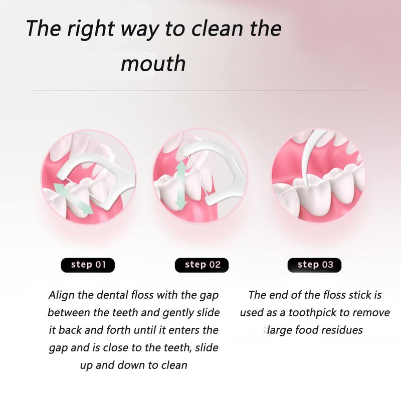 floss pick dispenser travel floss Package contents:floss pick case 20pcs dental floss with 2 portable case Portable case size:82mm*34mm Toothpick:75mm(H) Color:Pink or green The handle design is located at the golden point of the floss, and the middle part adopts a convex design to enhance the hand feeling and save effort and protect the teeth. STEPS FOR USAGE: dental floss picks STEP 1:travel containers Move part of the floss around the teeth gap, then slide into the teeth slowly. flosser dispenser STEP 2:Put the floss into one side of the tooth closely, gently pull up and down the floss to clean the adjacent teeth. floss pick dispenser STEP 3:pink stuff When encounter a large residue, the other side of flodss can be used for clean. Children and the elderly can use it.dental floss holder floss dispenser