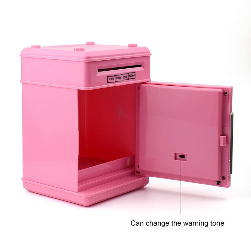 - Password Safe Money Box:Enter the 4 original password(default: 0000, Changable passwords as you like), the green light will be on, the ATM can be opened. If you enter the wrong password, the red light will turn on and the sound of "PLEASE TRY AGAIN" will prompt you (you can't open it,if the password it's wrong)