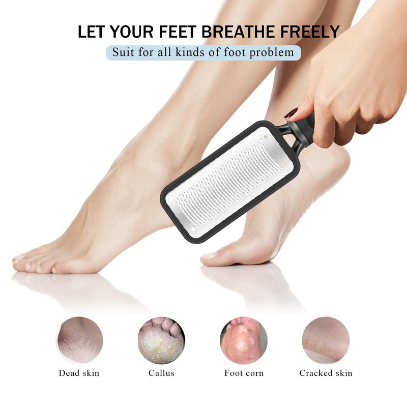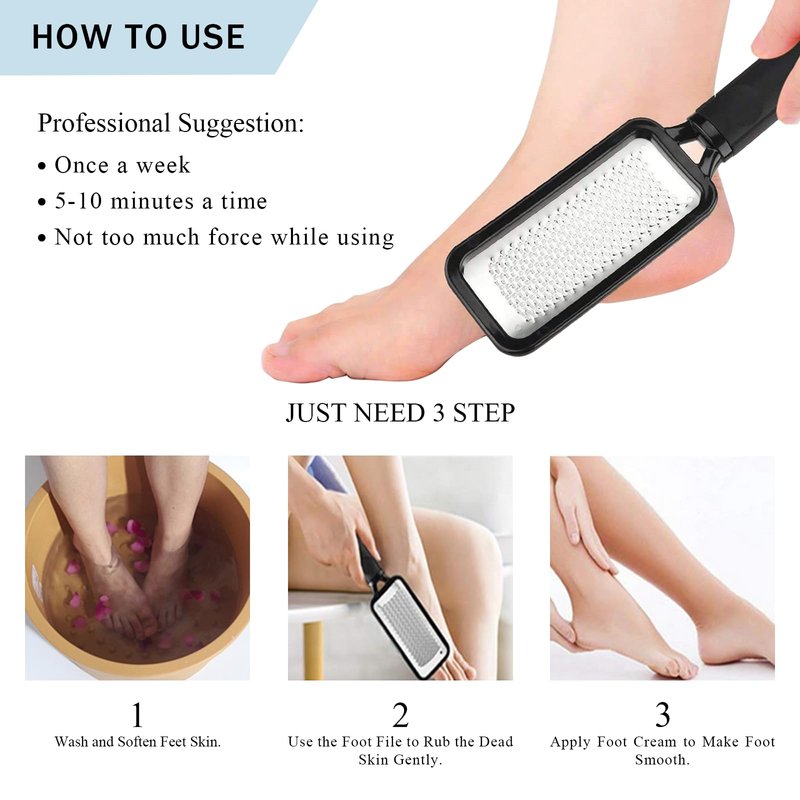 - High Quality Material: Made of professional stainless steel, reusable, waterproof and easy to clean, with non-slip matte texture, our foot file callus remover is the best choice for removing dead skin.