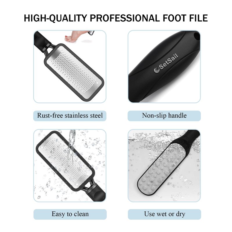 - Professional Foot File: SetSail foot scrubber 2-pack, advanced professional foot care, uses micro-blade filing technology to easily and efficiently remove hard dead skin on cracked heels, calluses on the side of the big toe, plantar warts, and corns on the soles of the feet, Leaves your feet as soft and smooth as a baby.