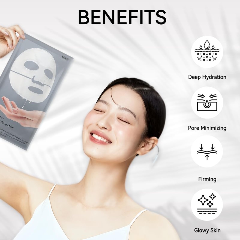 - [A 40g REAL PREMIUM COLLAGEN MASK] Packed with premium collagen and a single serum, it boosts skin elasticity and strengthens the skin barrier. Experience a noticeable difference in your skin with just one use. Compared to other collagen mask sheets, it stands out for its significantly thicker and superior texture, weighing an impressive 40g.