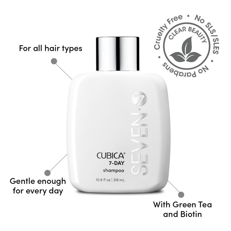 SEVEN Haircare Cubica 7-DAY Shampoo for Women, Men, All Hair Types, Add Shine and Moisture to Hair, Sulfate Free, Cruelty Free & Paraben Free with Biotin + Green Tea Extract, Made in USA, 10.8oz