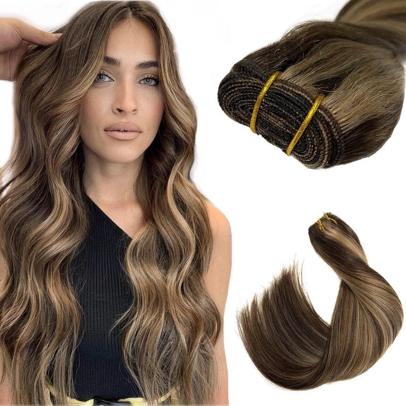 Ubetta weft hair extensions human hair sew in weave bundles human hair is of good quality in inexpensive price, sew hair extensions real human hair can be naturally blended with your own hair and can be washed, flat ironed, or curled by using hot tools, just like your own hair, no shedding, no tangles, no smell, silky soft. If you want to add hair length or volume to your own hair, balayage brown and blonde highlights weft hair extensions human hair sew in extensions is a perfect choice.