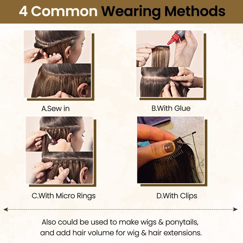 - 【Sew in Human Hair Extensions Wearing Methods】Real hair extensions can be installed in multiple ways: sew in, micro link in, clip in, glue in or tape in, make wig or ponytails, support to create any hairstyles you prefer. One piece weft hair extensions human hair can be cut according to your needs, please care the incision needs to be sewn or glued, to avoid the hair at incision shedding.