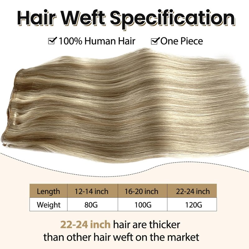 - 【Reasonable Hair Specs】Sew in weft hair extensions is 100% raw real human hair, 12-14 inch-80g, 16-20inch-100g, 22-24inch-120g, more grams than other human hair extensions on the market, but affordable! Thicker sew in hair extensions real human hair, 1 pack for full head adding hair volume, 2-3 packs for thick hair or full head adding hair length.