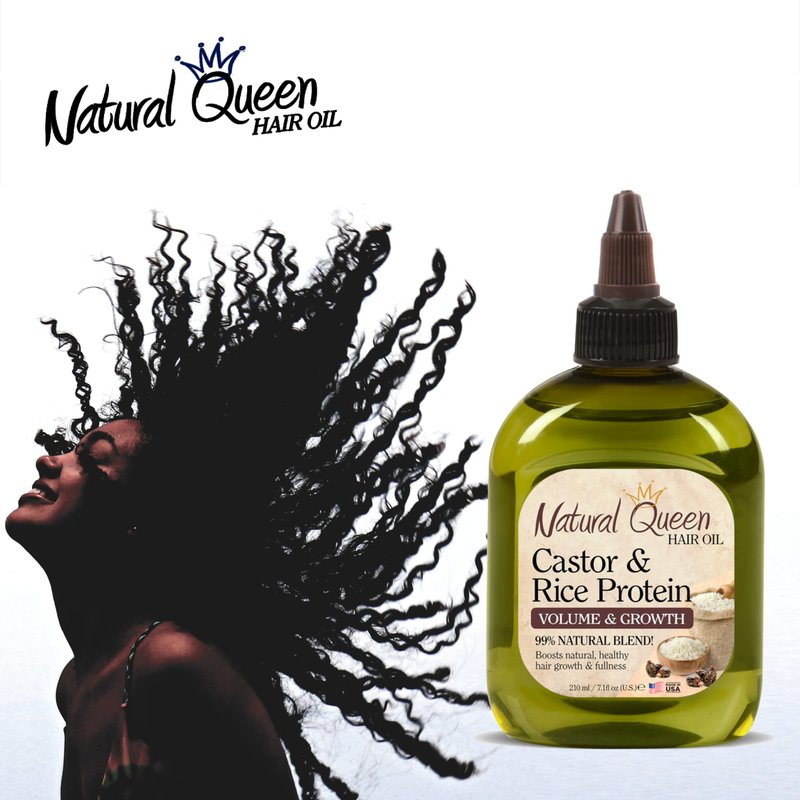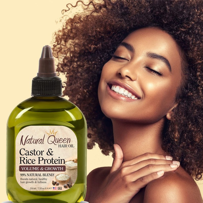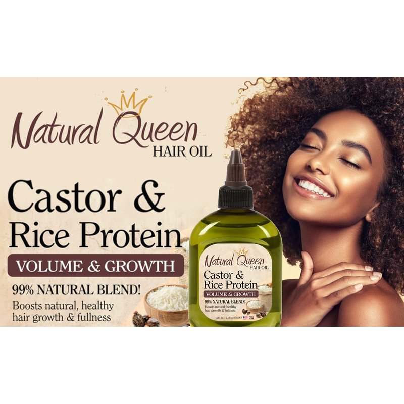 - HYDRATING VOLUMIZING HAIR OIL: Natural Queen Volume & Growth Castor & Rice Protein Hair Oil is a 99% natural blend that boosts natural, healthy hair growth and hair fullness.