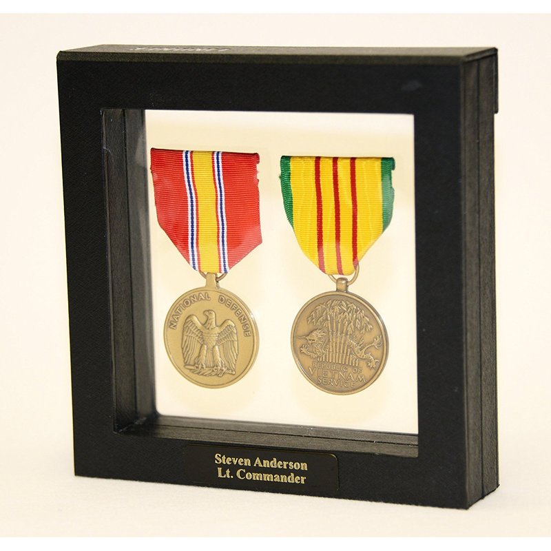 Prefect way to display that very special item. This box offers a very unique way of displaying your item. As both sides of the item can be seen. Ideal for Military Medals, Patches, Coins, Badges, etc etc. Great for displaying on a desk, shelf or any table top. This frame offers a completely new way of setting the stage for your collectible items. The Special feature, of these frames, are two transparent, flexible silicone membranes which surround your exhibition items softly and which create the impression that they levitate inside the frame. At the same time you have an un-restricted view of the back- and front side of your favorite pieces. There is no limitation in your fantasy as to what kind of items you would like to present in these frames. The material is very flexible and adapts completely to the surface of the objects and keeps them in their place; From coins and stamps to writing utensils, watches, knives, decorations, photos, jewelry and other favorite pieces - with this 3D frame you give your favorite objects a special frame. ...here is how it works: The frame can be opened completely. the collectible is placed on one of the two silicone membranes and the frame can be closed. The object will be held in place by the surrounding silicone membranes, keeping it in its position. A magnetic closure keeps the frame held together. If your coin is larger or you require to display more coins, please see our other 3D Frames as we have other various sizes. Display's coins perfectly that are 2.5" or less (coin not included)