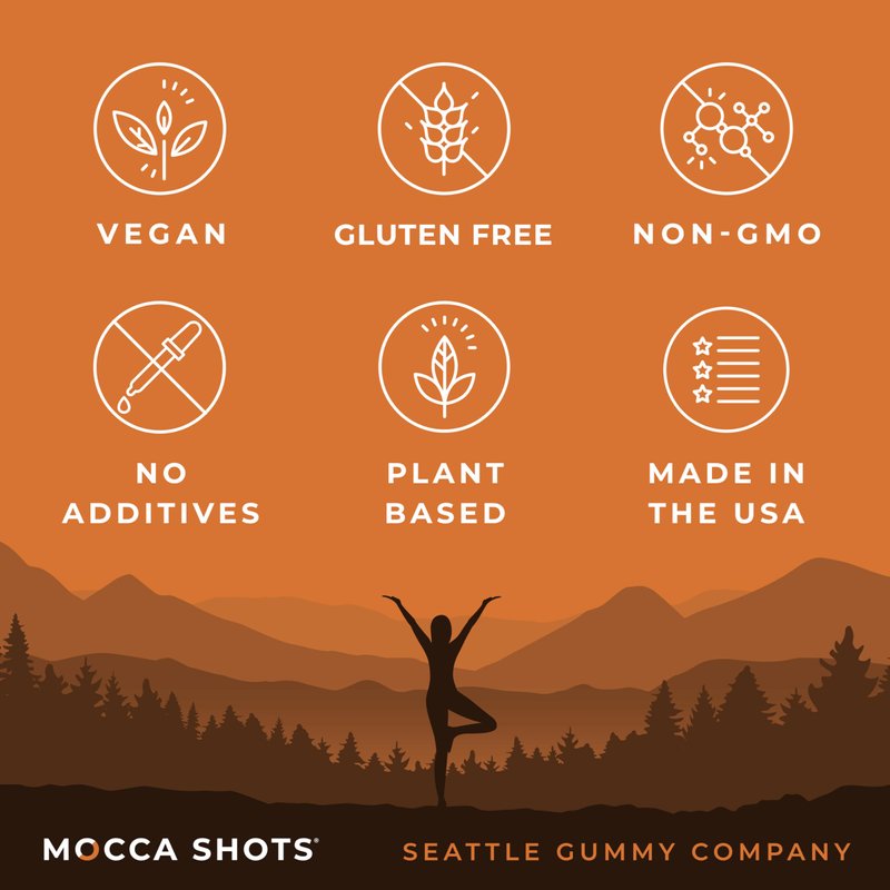 Kickstart your day with Mocca Shots Energy Gummies, the fastest way to get caffeinated! Each pack is packed with 200 mg of caffeine, giving you the same energy boost as two cups of coffee. Designed for rapid absorption, these gummies ensure you stay on top of your game in no time. Our unique formula combines powerful caffeine with herbal nootropics to elevate your energy levels without any of the jittery side effects. Whether you’re tackling a tough workout, a demanding project, or just need an extra push, Mocca Shots are here to help you sharpen your focus, seize the day, and GET ____ DONE!