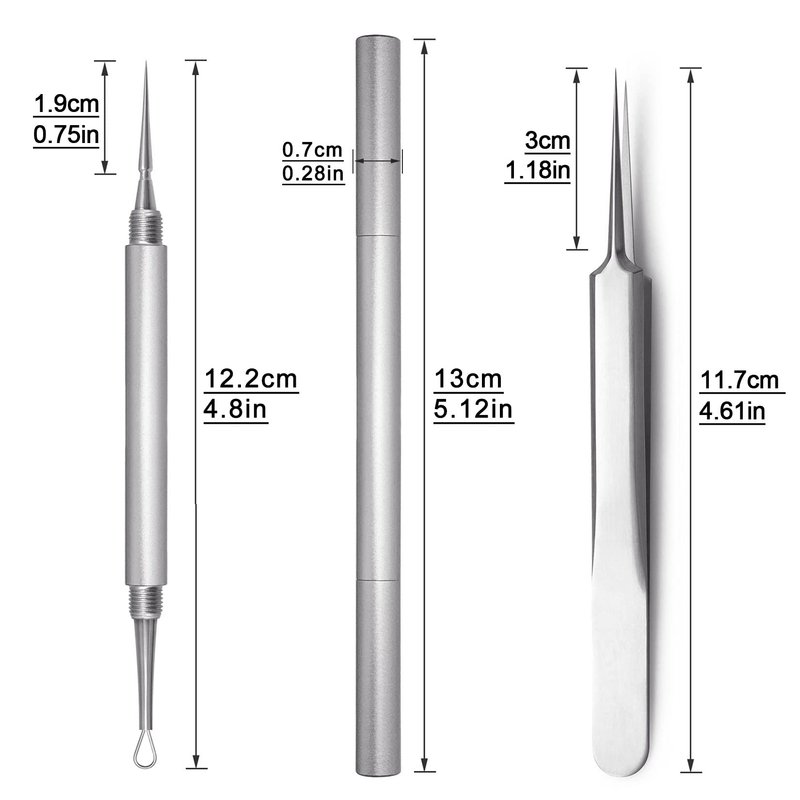 They are easy to grip, high grade material, can be used for both normal skin or allergic skin, very comfortable touching and not easy to deform, sharp and sturdy. Face care was never easy, and they are effortlessly remove pimples, blackhead, whitehead, pimple, comedone zit, deep cystic acne, even deep stubborn pimple.