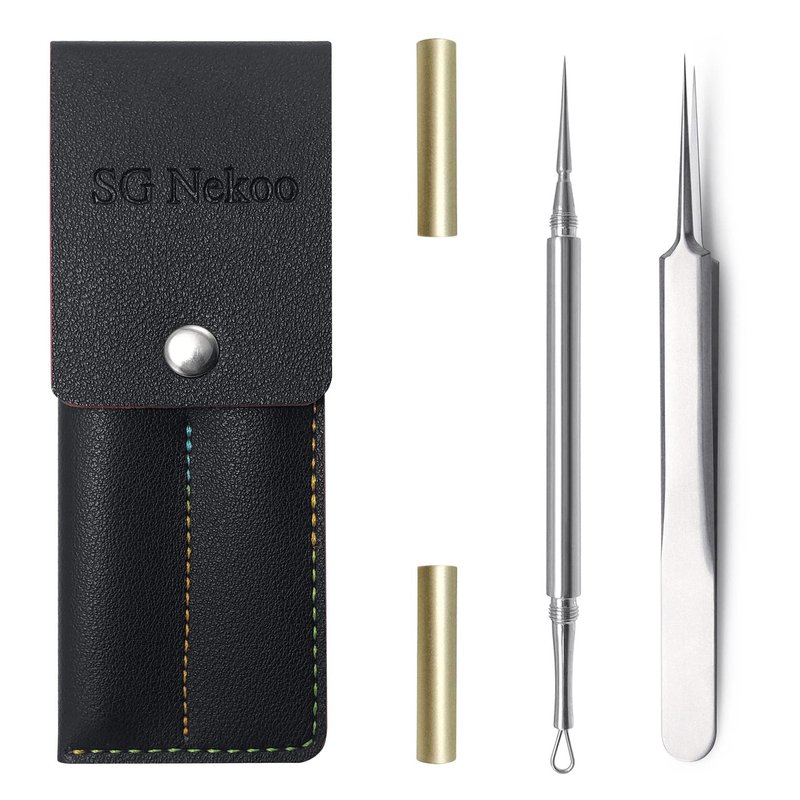 SGNEKOO Professional Facial Milia Removal Tool and Whitehead Extractor,Titanium Alloy Double Ended Needle and Steel Tweezers Kit,Blackhead,Blemish,Zit and Pimple Acne Remover Popper